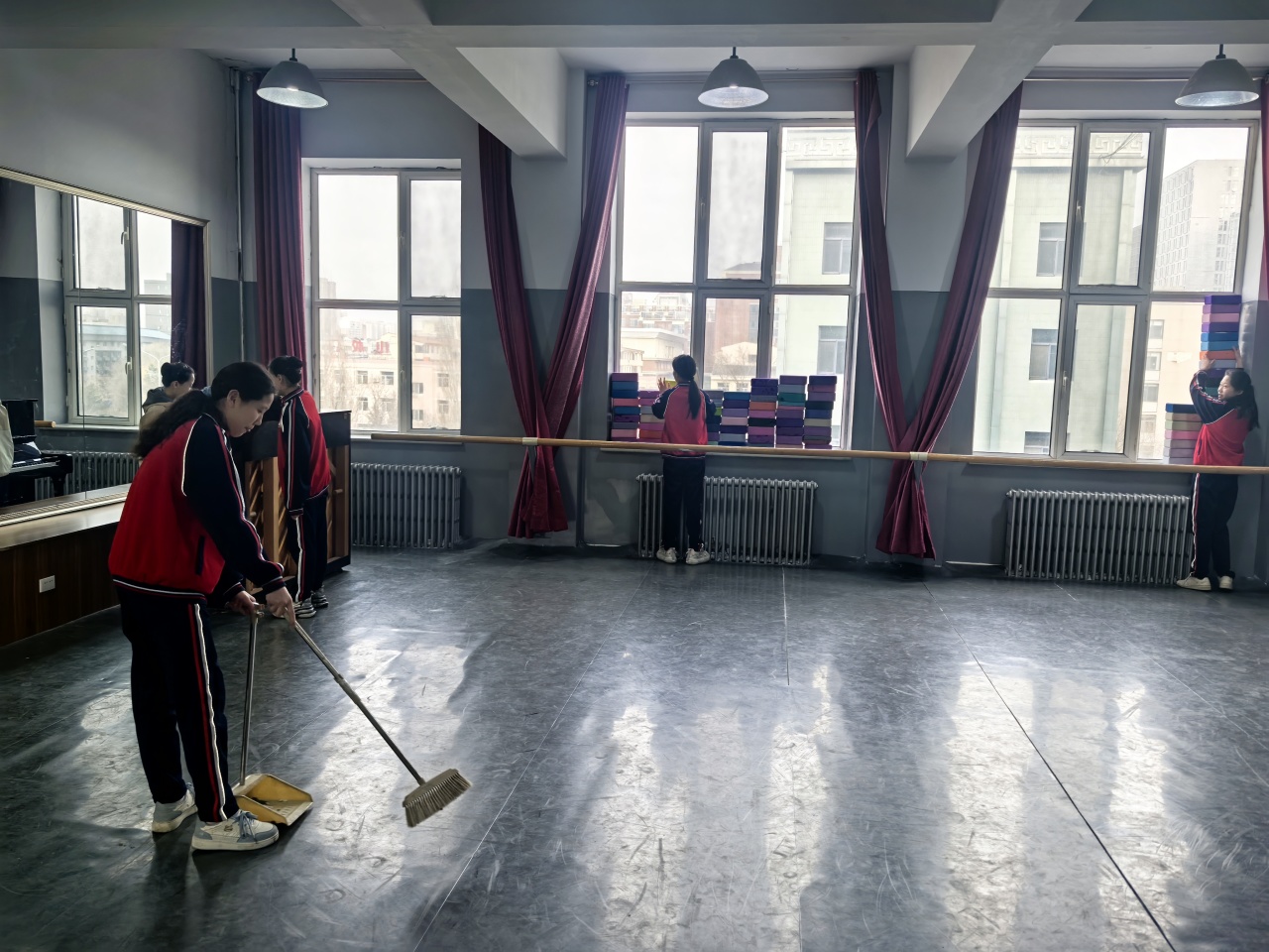 知行合一,笃行致远。在志愿服务实践环节,组织学生志愿者分组行动,对教室、排练厅、琴房、学生公寓、办公区等重点区域细致清扫,认真擦拭门窗、整理杂物、清除卫生死角。大家以实际行动生动诠释“奉献、友爱、互助、进步”的志愿精神,充分展现学生朝气蓬勃、乐于奉献的良好精神风貌。