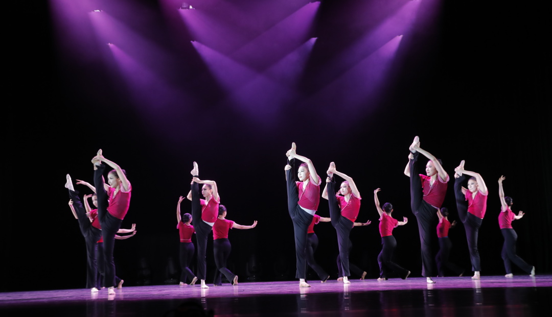 “基本功教学展示”作为首章核心,通过软开度、控制组合、大踢腿、小跳/中跳、古典舞身韵及技术技巧等六大模块的系统呈现,全面展现了学生扎实的舞蹈功底。学生以精准有力的动作、富有张力的肢体语言,赢得现场阵阵掌声。